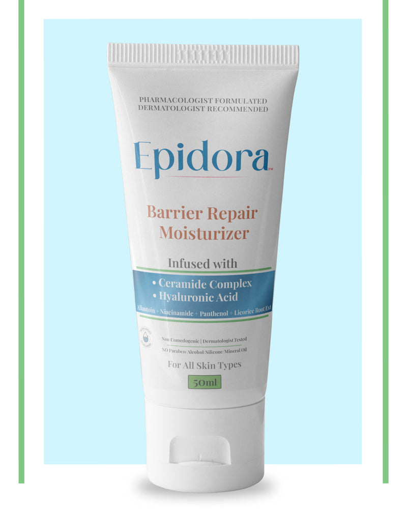 Epidora Barrier Repair Moisturiser with Ceramide Complex, Hyaluronic Acid, Multivitamin and Glycolic Acid.